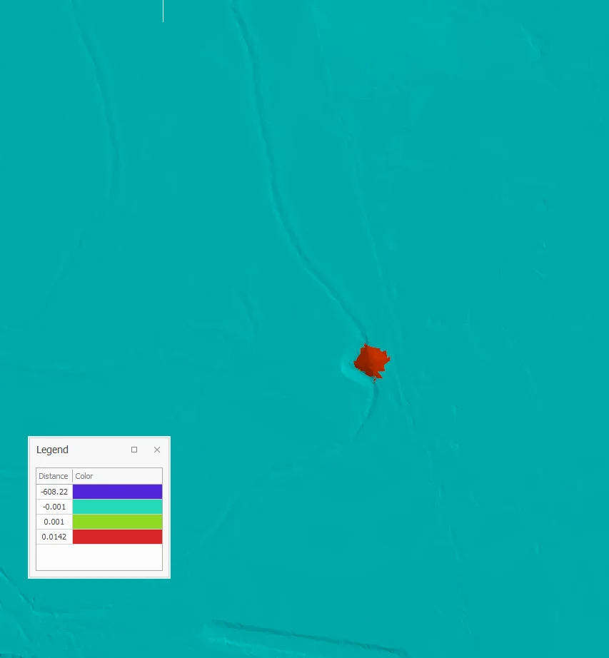 This is just a simple example showing how deviation analysis works. I took a LiDAR scan, filled in a small hole, then ran a comparison between the two surfaces. The software instantly flagged the change, even though it was minor.