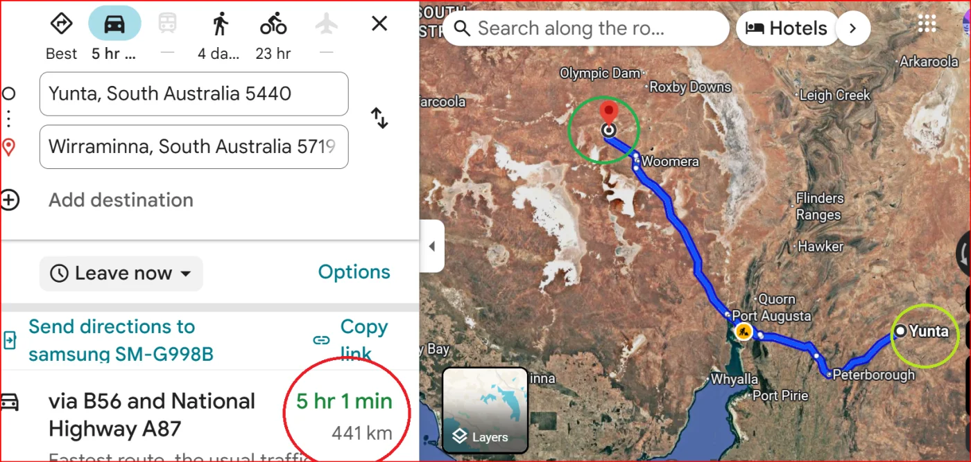 FACT CHECK = Glendambo is a 5 hour drive from Yunta!