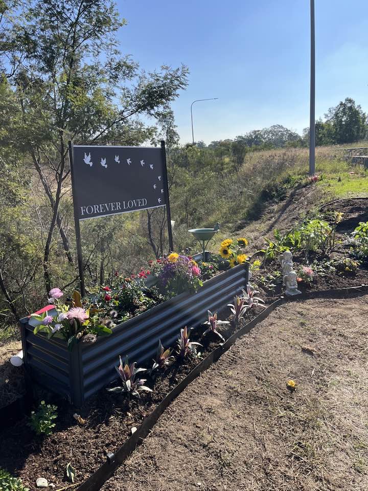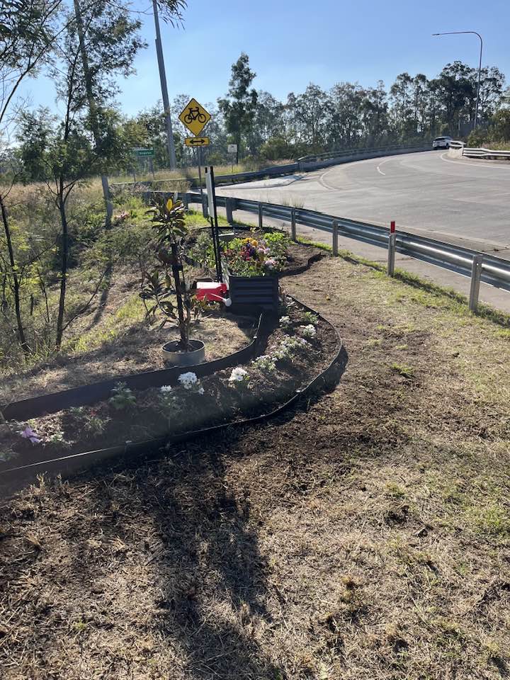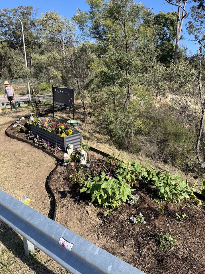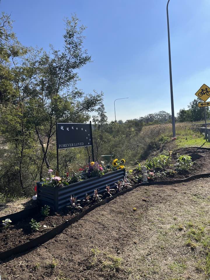 That's lovely. Usually, it's often just a painted marker with artificial flowers and a teddy bear... Not that there's anything wrong with that, often there isn't space or a safe area to make a memorial. This is a proper cultivated garden with borders and real plants. Someone or someones are taking the time to use the space made available for something beautiful.