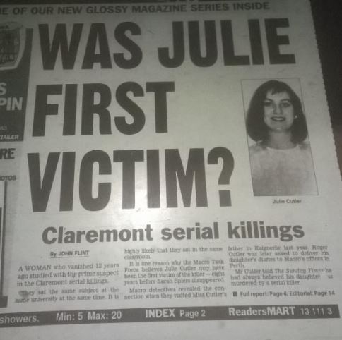 Headline of The Sunday Times July 14 2000, when the image of the Fiat was first published was "Was Julie First Victim?" Claremont Serial killings