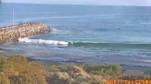 Sea was reported to be 1 m on a 3 m swells with SW winds at 10 to 15 knots easing to 10 knots by late morning. Cott with a SW or WSW wind is protected by groyne and in the swell shadow of Rottnest.
