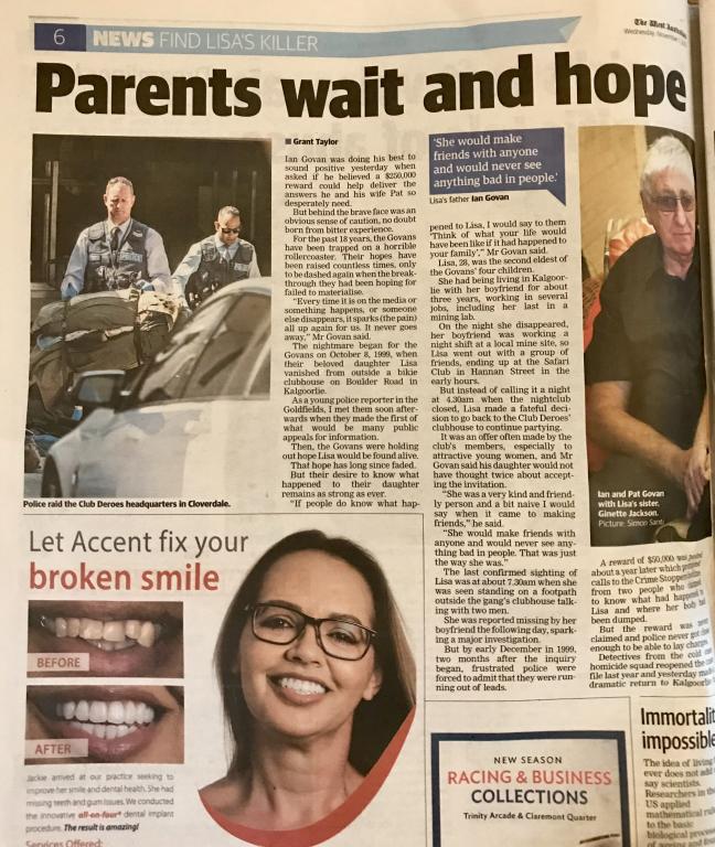 Article in the West Australian today regards to LG who [FONT=&amp]disappeared on October 8, 1999 [/FONT][FONT=&amp]in Kalgoorlie (Note does not appear to be related to CSK however thought of would be of interest).[/FONT]