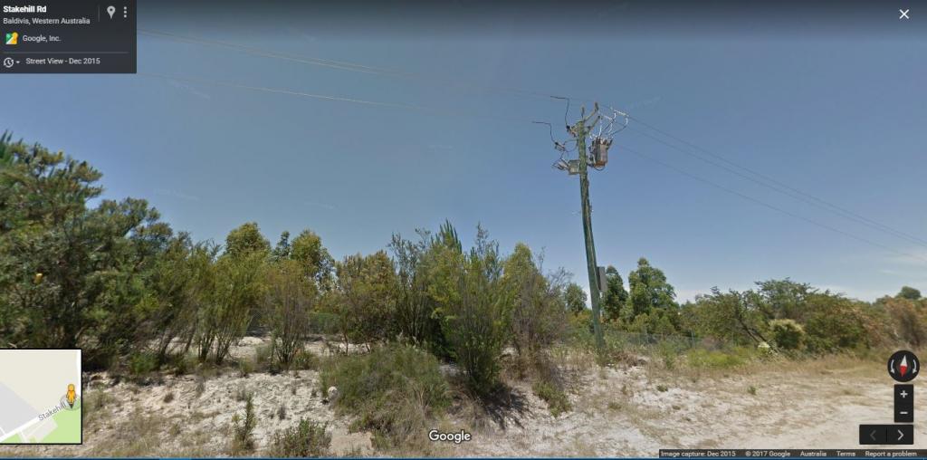As clearly seen in the Westpix photo. The corner of Baldivis Rd and Stakehill Rd is clearly seen in the bottom right. I used to use that route as a short cut to visit friends who moved from Queens Park to Madora Bay in 1980's Baldivis Rd and Stakehill Rd were sealed back then. The part where the police cars are parked are on the old original road before the sealed version from the 1950's cut the corner. Pictures of the same pole a bit further down Stakehill Rd (towards the explosives site entry) in different years suggest there was likely to of been a transformer closer to the corner before the roundabout was put in, in recent years, causing the transformer to be moved to this pole, from the one seen in the 1988 picture.