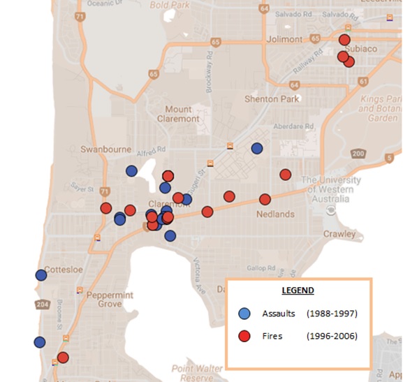 I was reading through some articles and started noticing how many fires there were in Claremont. The articles are from 2000-2009, so I don't know what was happening in the 90's (although one article did refer to a fire in 1996). The articles I have are pretty limited, so there were probably more that I don't know about. I tried to look up fires in Freemantle and other areas, but didn't' find many.