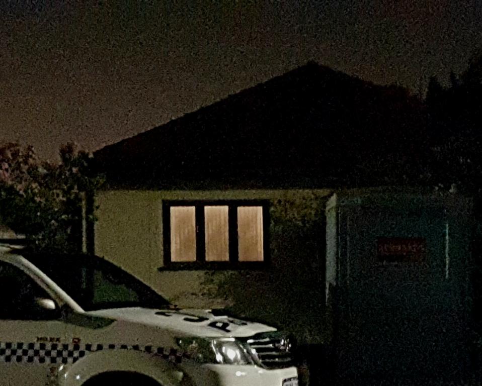 Are you referring to the photo with man and lady in the garage?... there is a guy at the back facing a bbq with white/grey hair... They guy who was arrested had white/grey hair...
