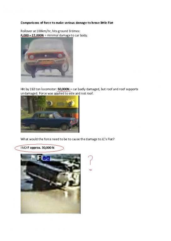 Apologies PSC for any misunderstanding as I was using Newtons theories of forces to work out how much force was needed to cause the damage to the car and to work out how the car could have entered the water. It just shows most of the theories put out have to defy the laws of physics to have occured.