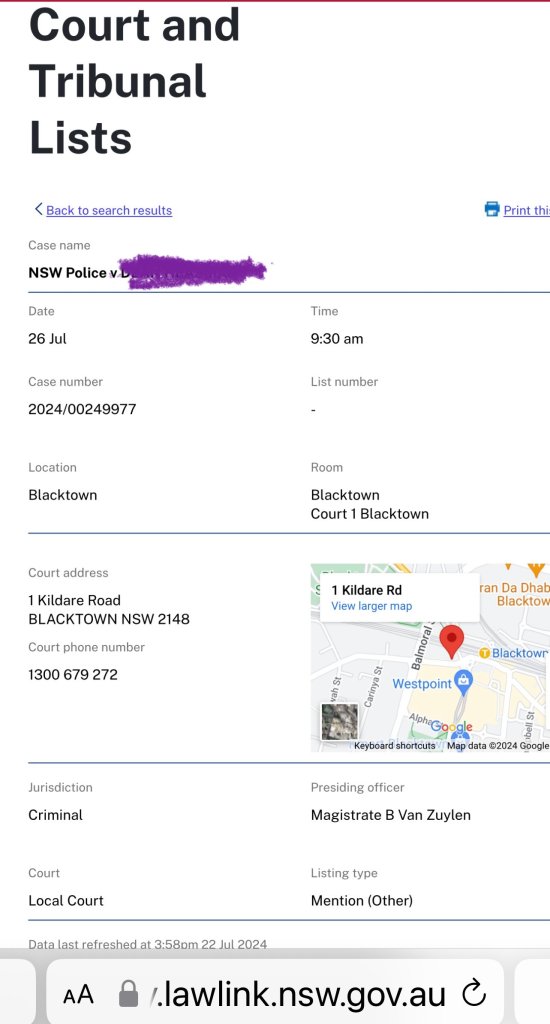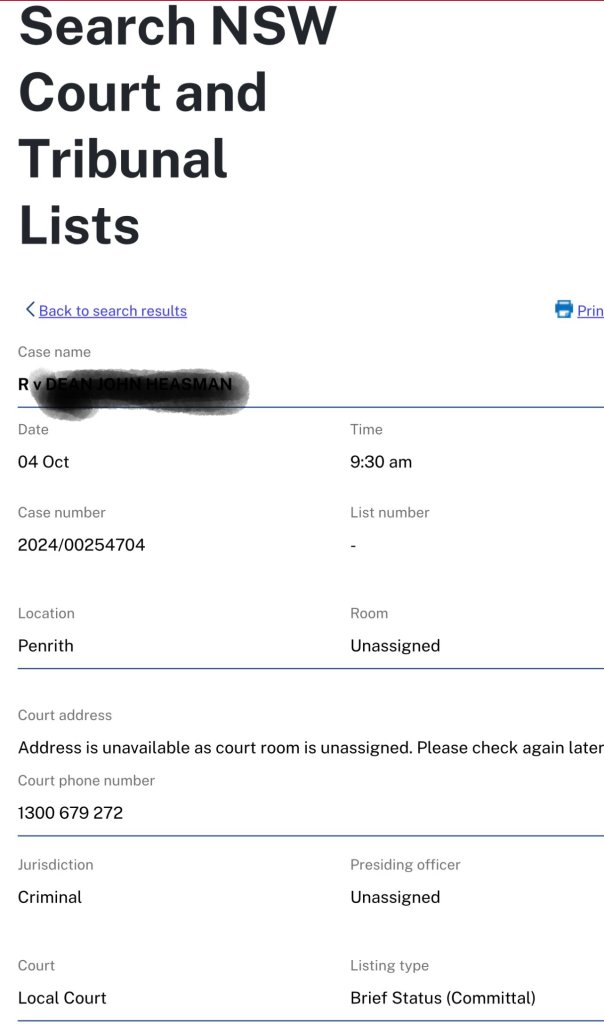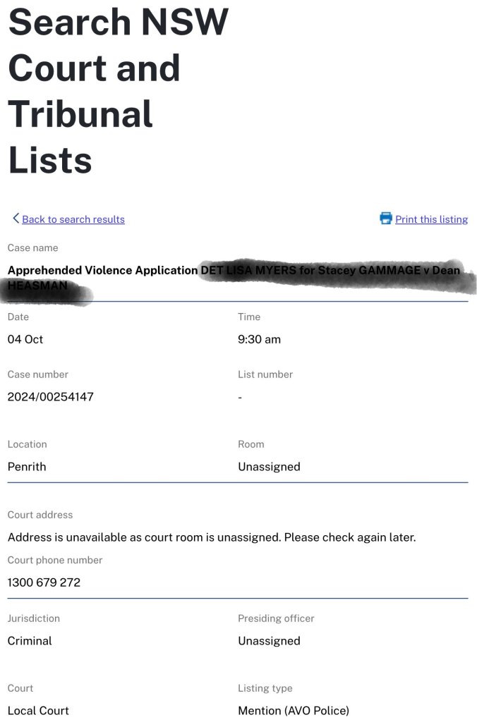 Yes it is a bit odd. The AVO was previously listed on Lawlink for 11th July, also as a Mention. Perhaps it wasn’t heard on that day….. But then as you say seems unnecessary as he is in jail. Unless the more charges they can lay on him, the more dangerous he is proven to be when it comes time for his trial?He is already in jail, right? Why would she need to take out the AVO now....