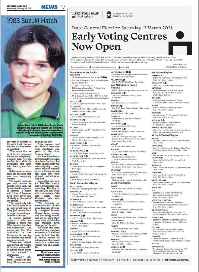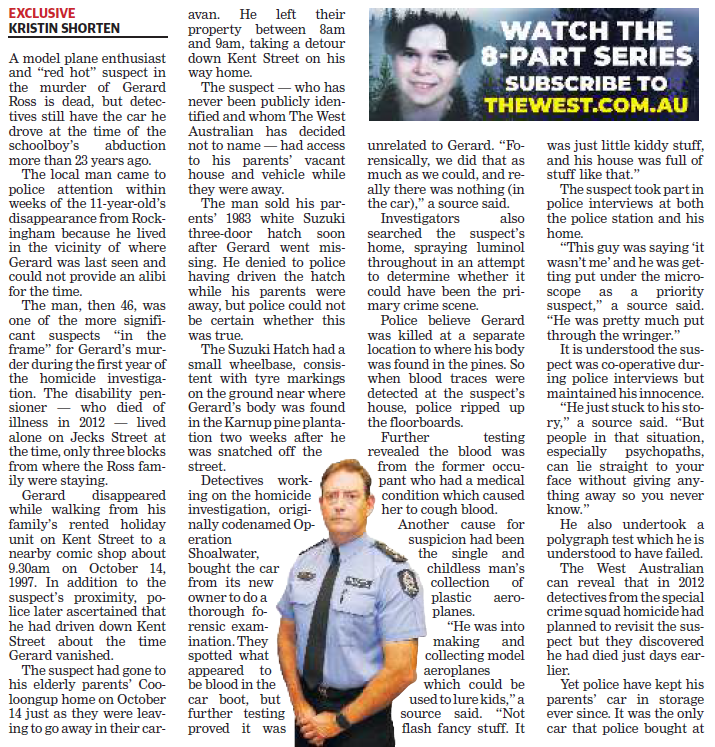 New article in my local Western Australian newspaper, The West Australian, about an attempted abduction prior to Gerard’s murder.​