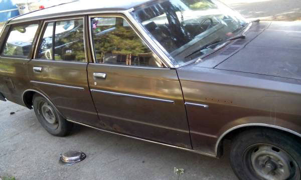 Faded maroon or brown station wagon. Two men seen struggling to get a boy into a station wagon (both mid-30s one fair headed the other black hair). Gerard was walking along Kent St, Rockingham (near No. 99)