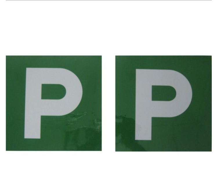 Types if "P" plates available in Victoria . Assuming the 2nd yr P plate which is a green background with white "P" lettering