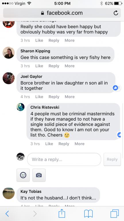 Chris ristevski getting all cocky now. The friggen whole family must think they have won this and will never be solved .