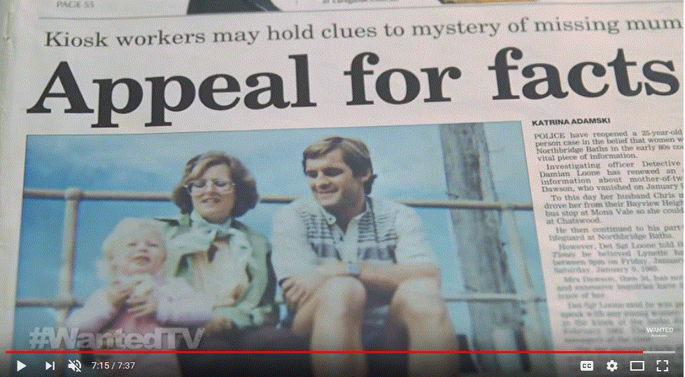 I had posted it very early on in the thread which is why I knew it existed. I have watched it several times at different stages of the listening even went searching for some of the articles displayed in the newspaper. The one about the kiosk was how ladies at the swimming pool were checking to see if anyone remembered receiving an STD call on the day that Lyn had arranged to meet Chris, Helena and family at the pool. He did also work there part time but I think I remember reading that as part of the podcast.