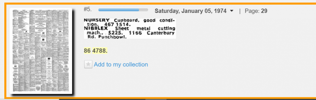 I know so frustrating they don't have the Sydney Morning times on trove for free .. it only goes up to 1995 but so far a few interesting hits that I can only see a small portion of the Ad .. this is cruel lol