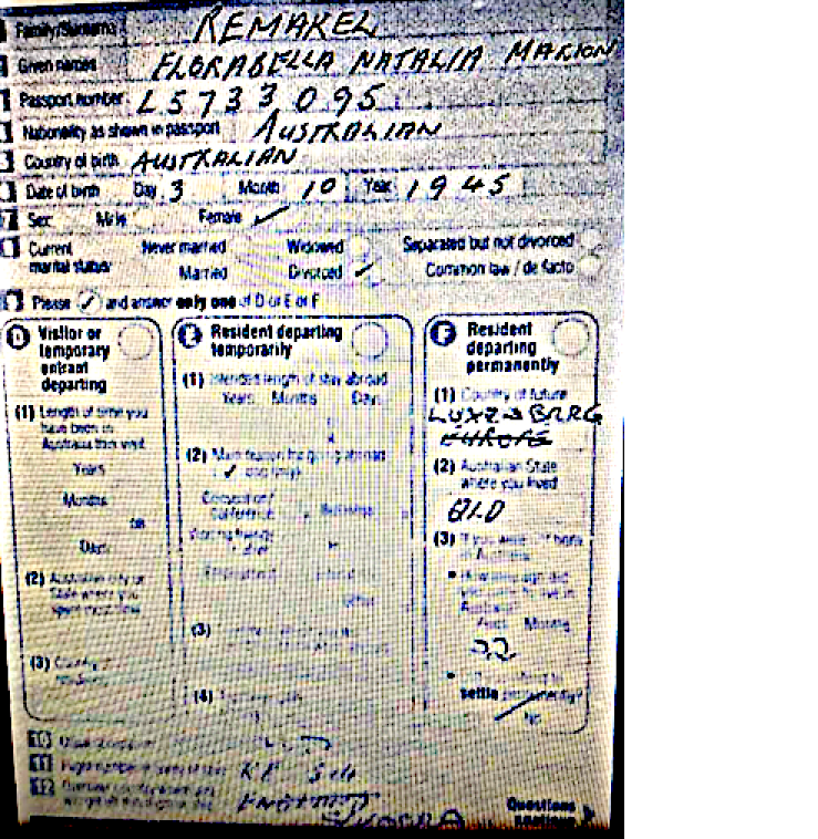 In the Resident Departing Permanently, it looks like (3) If you were born in Australia - can't read, but something like how many years months have you lived here and it looks like 22 or 32 (?) years, can't quite make it out.