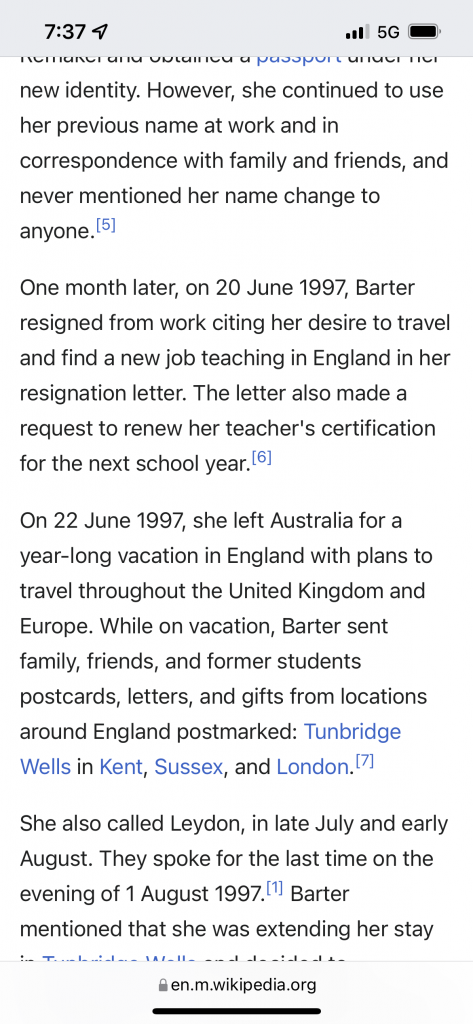 This is massively frustrating for all of us looking into this case in the UK. Not found one person who remembers her or has come forward. Saying that this case has barely had an ounce of publicity in the UK including the South East of England which is strange. This is the land of Sherlock Holmes and Miss Marple after all. I feel it needs publicity in one of the bigger national newspapers (any who might remember her probably aren’t on Social media) and a mainstream TV station to tell the whole bizarre story. A little old lady sitting in front of her TV in the UK might then say that face looks familiar.