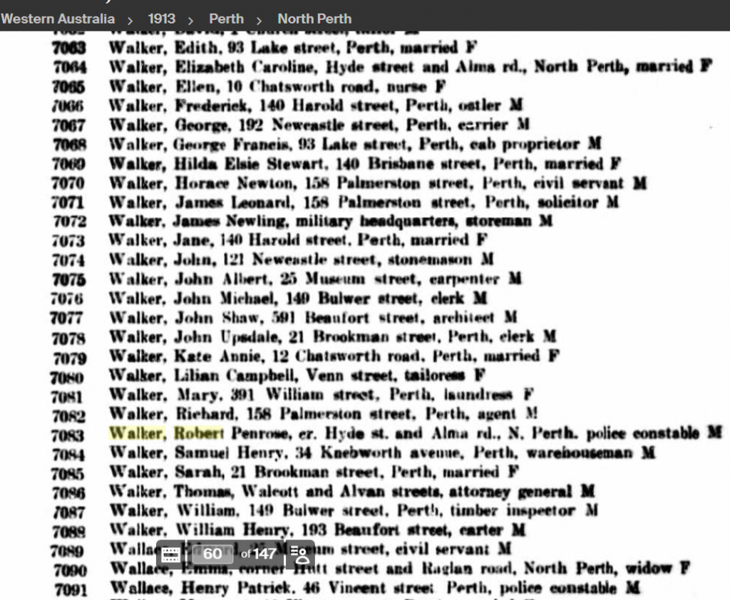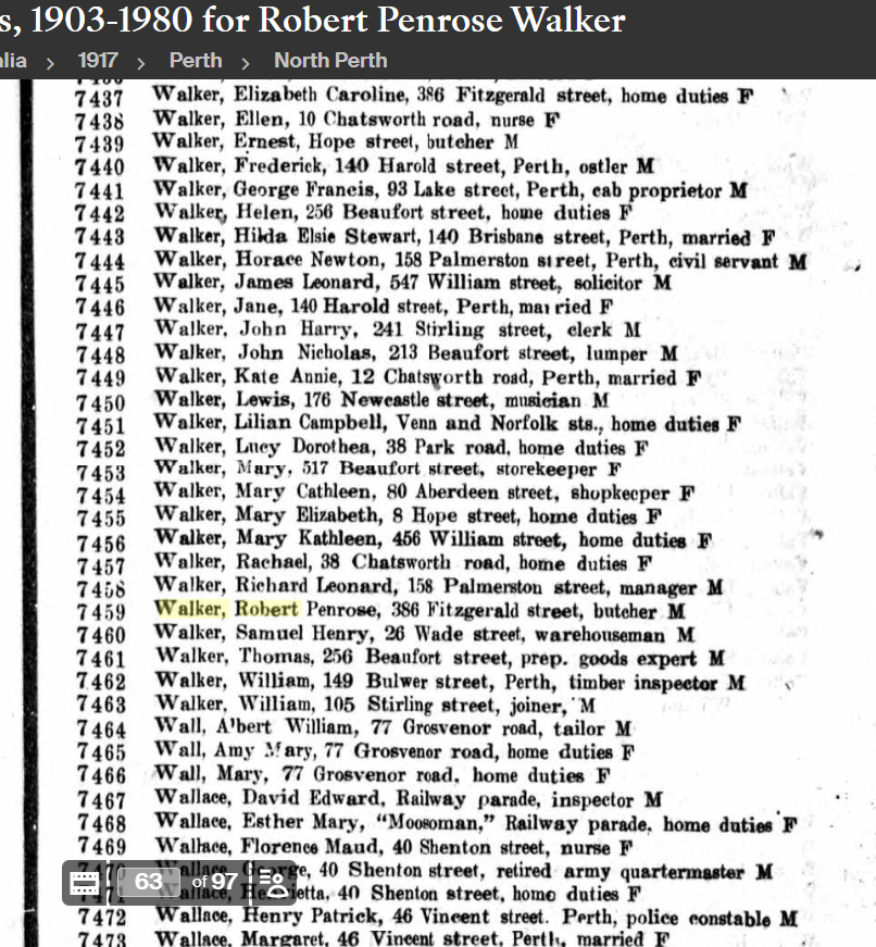 RPW was a police constable in 1913 and in 1917 was a butcher in Western Australia.