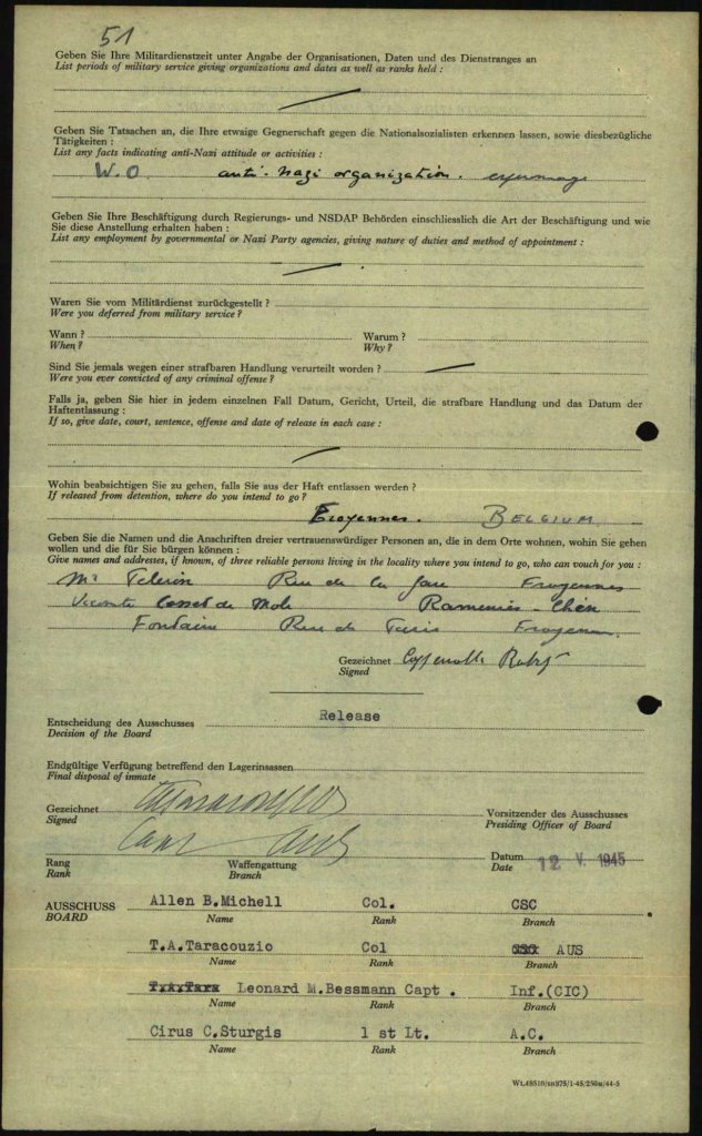 I am wondering about the people he named on page 2 of that document who can vouch for him. I can't decipher the first name, someone living on the Rue de la Gare, Froyennes. Could that be the fiance (or connected) as RC may not have know her whereabouts/situation before being released?