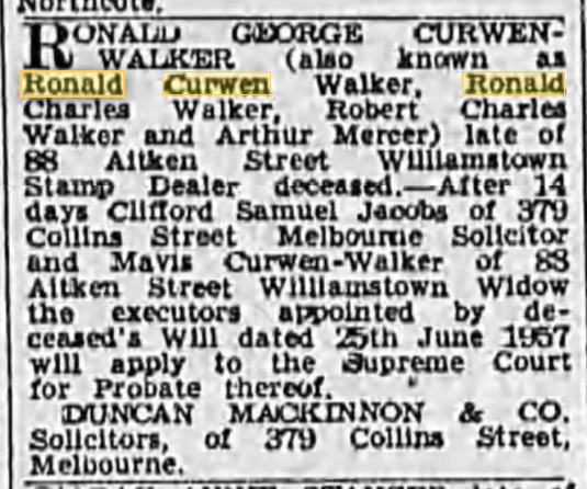 The Age 1958 - Death notice with all the aliases - does anyone have a real name in this saga ...?