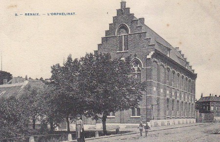 Looks like the Ronse orphanage was demolished in 1962 to make war for a town library: