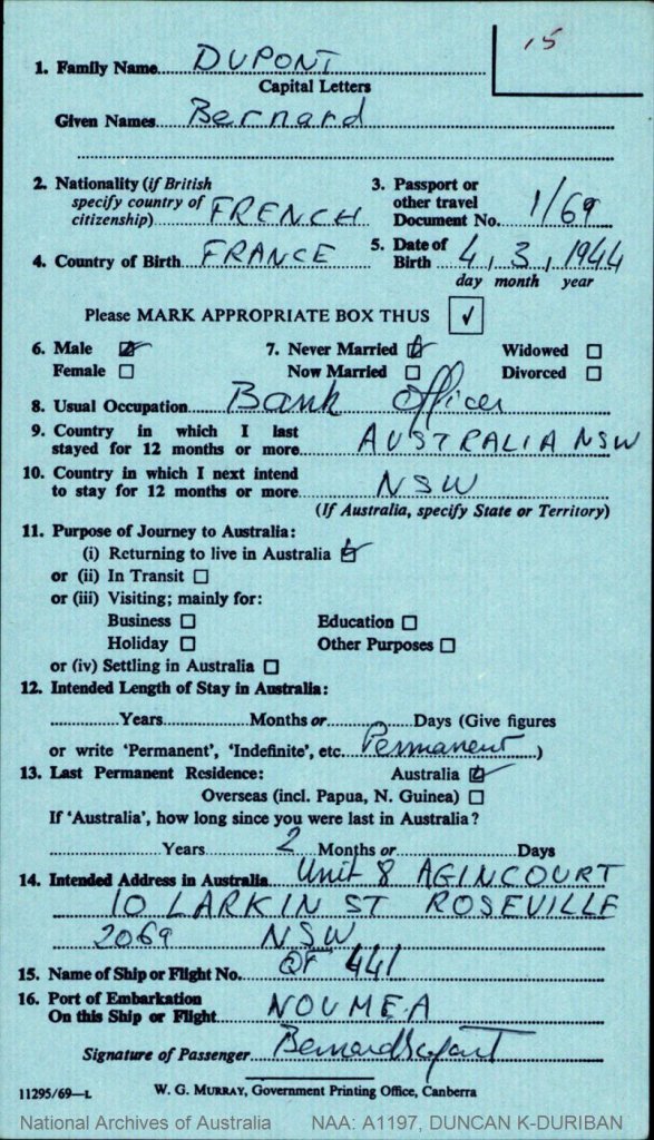 Then we have a Bernard Dupont as a banker coming into Aust April 1970
