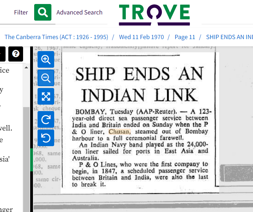 From reading the full manifest there were still 300 passengers on board that did not disembark in Australia, some of whom had an address in India so it is possible the Chusan went to India after Australia IMO