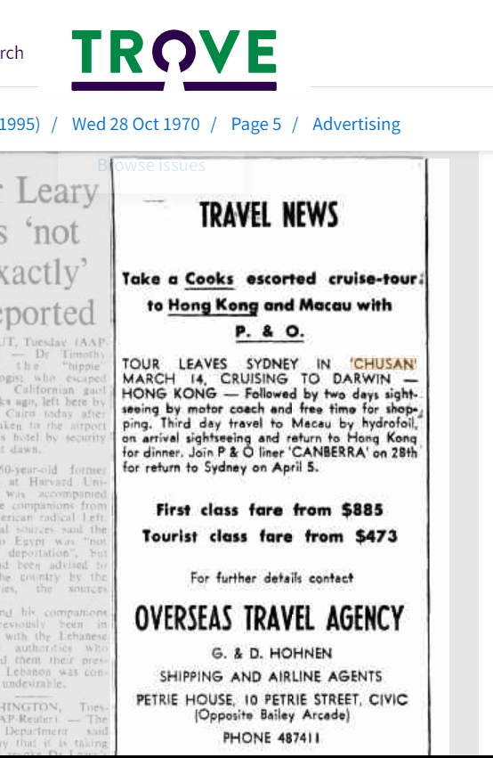 Wikipedia says: For most of her working life, she carried passengers between London, Bombay, and Japan, but from 1963 also operated to Sydney, Australia. In 1973, she retired from service and was sold to be scrapped at Chou’s Iron and Steel Company Ltd. in Kaohsiung, Taiwan.[2]