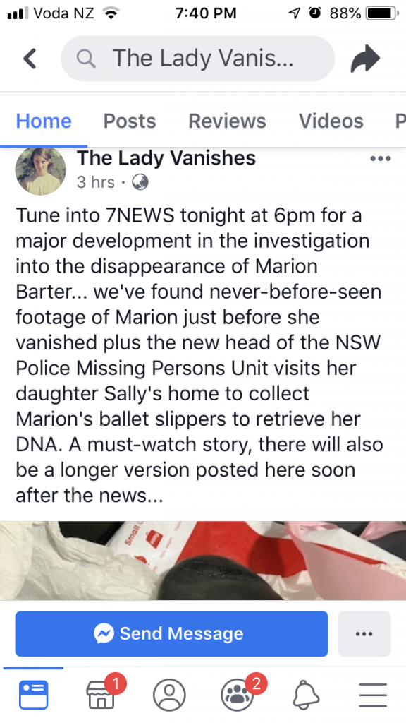 Channel 7 are advertising 'a major breakthrough' on tonight's news service. I think it's only broadcast in Sydney and Brisbane. The segment is going to be posted on the lady vanishes Facebook page once it is aired.