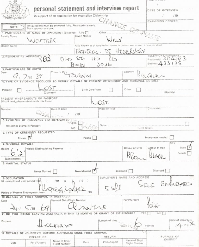 WW sets up Renov Pubs with his other "'business partners'" FdeH and WC and applies for a job, adding PHOTOGRAPHER to his passport MAY 1969 when he arrives into Aust.
