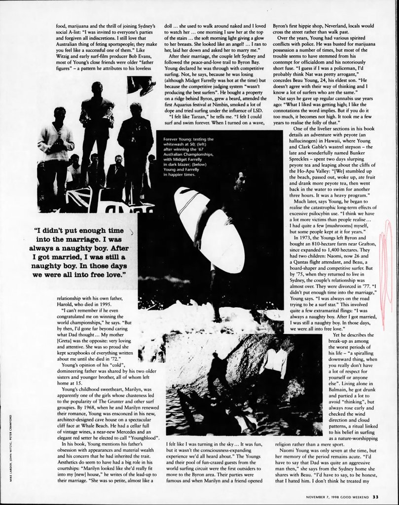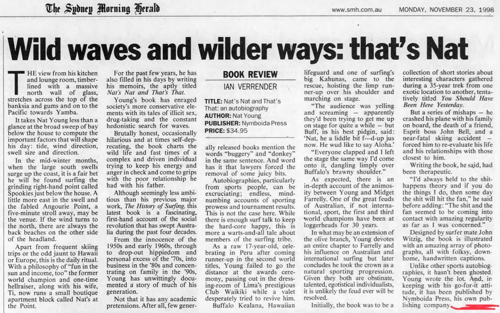 I searched through all the years of Aust surfing and looked at connections to that time and more recently in Byron Bay and Gold Coast. I noticed NY had spent most of his surfing life in Byron and had book launches in many top surf areas along the QLD and NSW coast.