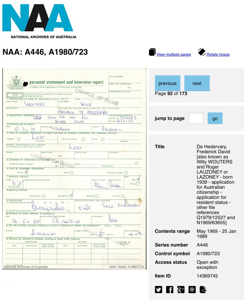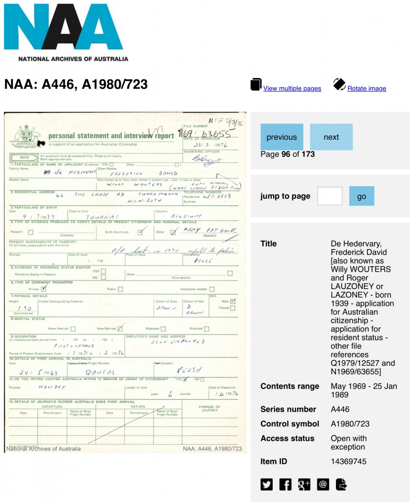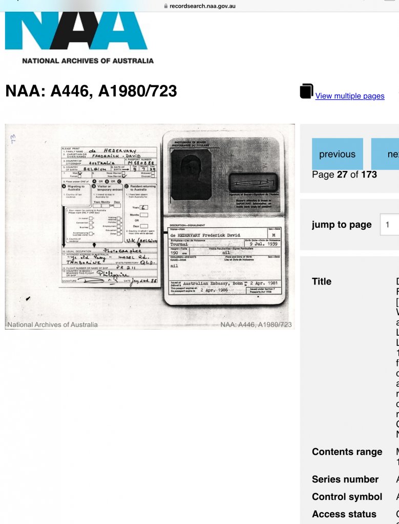 Also the Fredy David passenger card found arriving into Australia 1974 - there are those circles over the i again.....