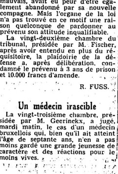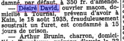 Coppenolle Charles, shopkeeper in Ramegnies-Chin, accused of having insulted Désiré David, is condemned with a suspended sentence of 1 year, with a fine of 70 francs.