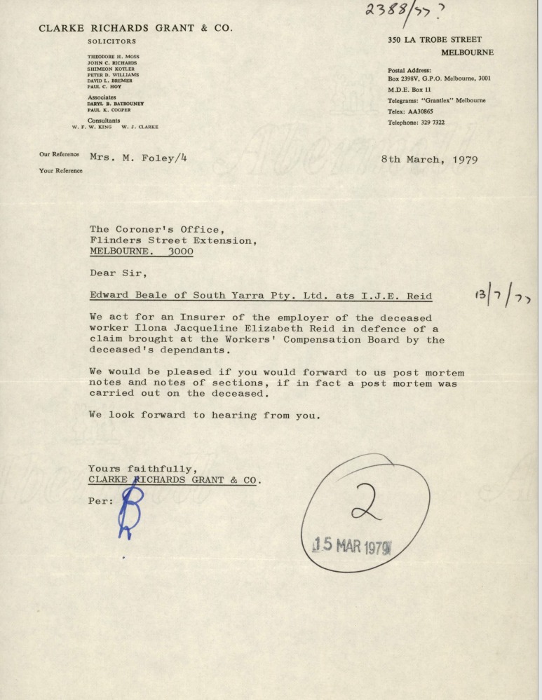 Thank you @mishy66 for all your research! What an absolute c*ck up these reports are!! Another case of government paper shuffling and excuses, but I would like to see the Maurice Blackburn paperwork and who they referred to as "dependents". There seemed to be suspicion as to the cause of her death from the beginning and I also noted that the coroner's report stated "no common….poisons…were detected". That alone leaves an open finding or the need to continue investigating. I can't seem to find anyone with the name of the carpenter who identified her body and why wasn't it her husband Mr Reid/Read?