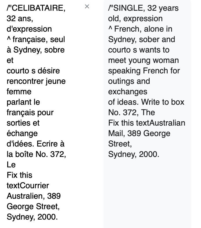Probably an old summary for many here but new for me, I’ve been having a look through Trove and it’s a coincidence that whoever placed the ad below is similar in age to what AH would have been in 1972. After delving a lot into Trove I’ve noticed that with many personal ads placed over the years (looking for a companion and mainly in Le Courrier Australien), there are ads where the poster is aged around the same as AH would have been. MOO