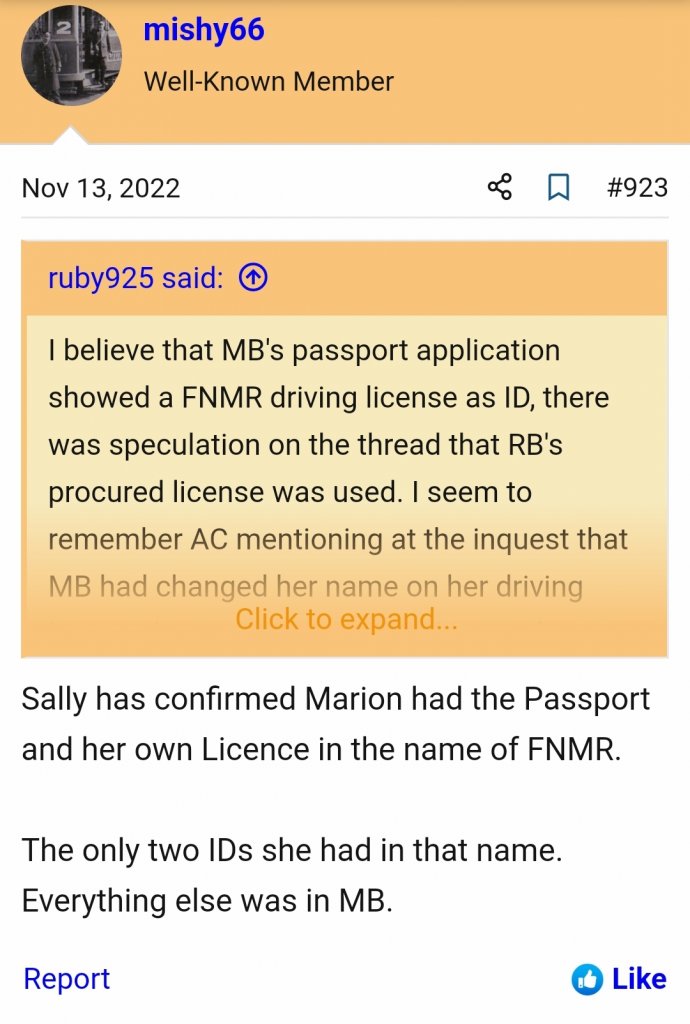 100%. They'd already had MB's valuable house items (plus who knows what jewellery etc.) to auction/sell before she even left for Europe, so the scam was well under way by the time the funds were withdrawn. Whoever else was involved was already in it up the their neck. MOO.Looking at this new information, with him actually going into the bank on his own and not using ATM, AND the fact he had NO trouble at all convincing CdeH dentist he was her godson and getting away with thousands of dollars for his kids braces when they were teens, I have no trouble at all seeing him or someone close to him, using MB ID to fleece her accounts at the time her passenger card arrived back into Australia.