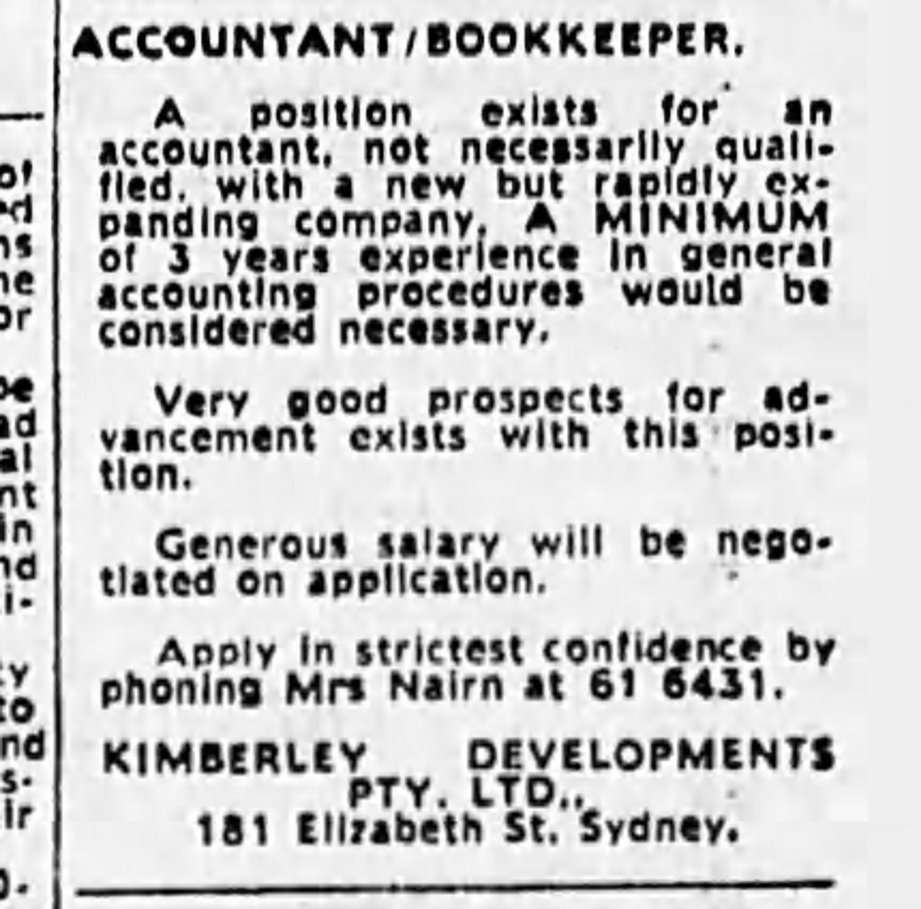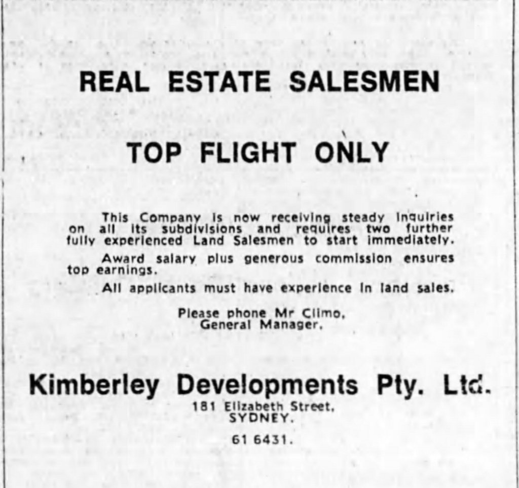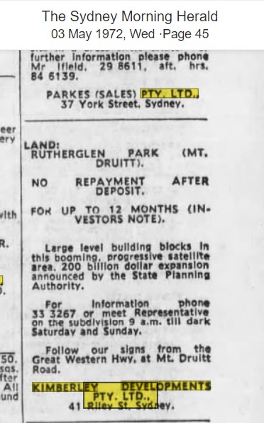 And that of the Kimberley Development Company and its address at 181 Elizabeth St from 1972