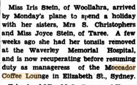 Just to add to this Coffee Lounge and going on the back to his story of his walk to the news paper stand on cnr of Pitt and Market St