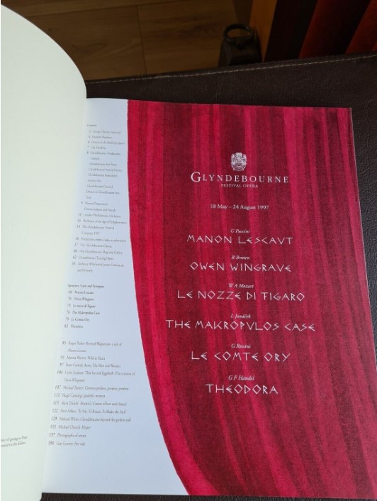 The biggest opera Festival in the UK is at Glyndebourne which in 1997 ran from the 18 May to 12 July so during part of Marion’s stay.