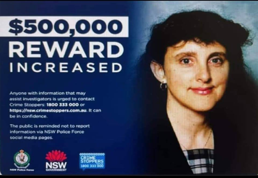 "Missing Marion Barter" billboard (2022) with original reward amount, Grafton area (northbound)