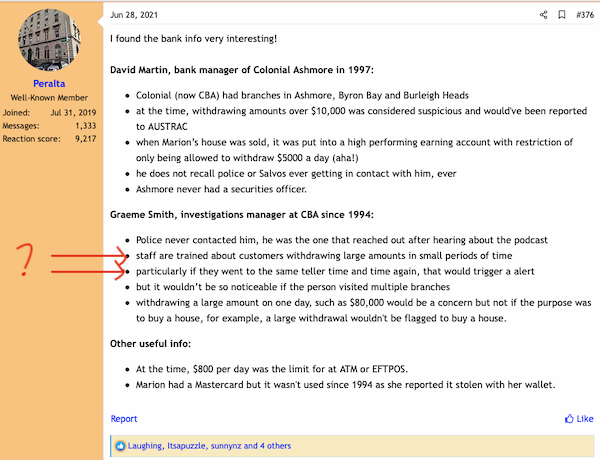 1986 = Travel records show he had been in Australia but left for overseas 27 days before the barracks burglary.