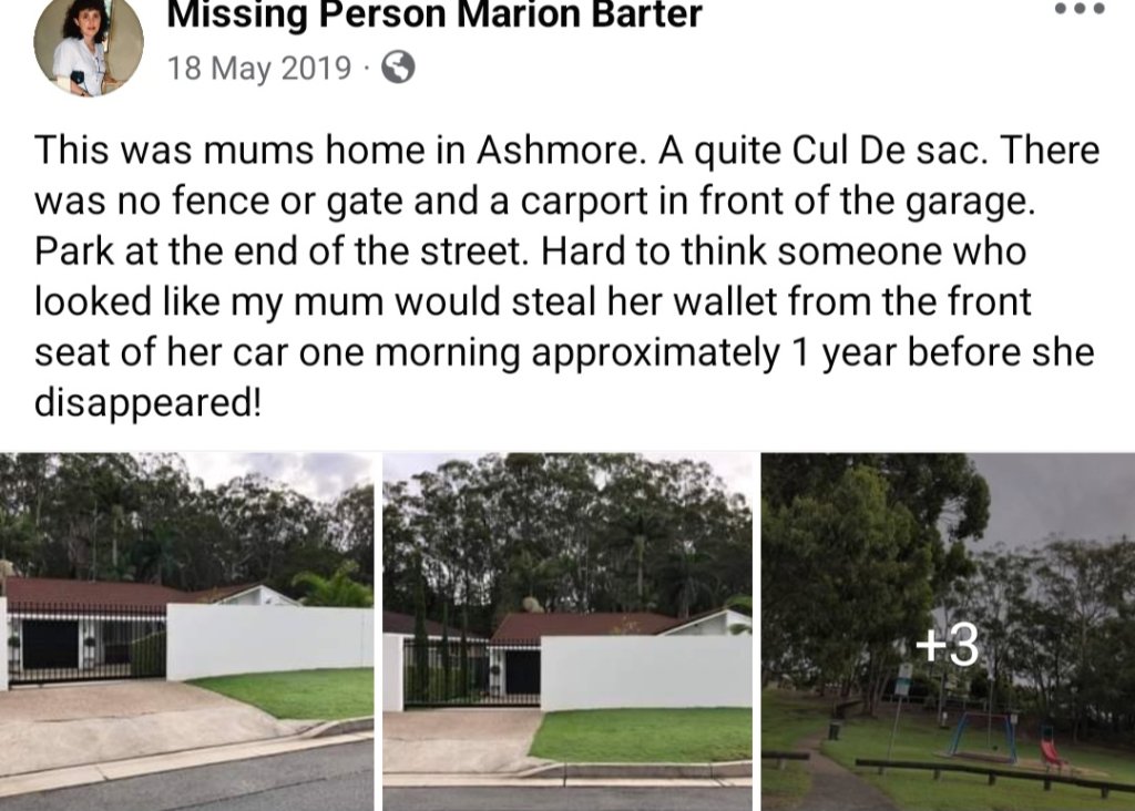 KNOWN ~ Mid 1996 she has her purse stolen from the front seat of her car which was parked at her home. The CC was later used at a service station by a woman looking just like Marion at the time.