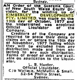 I've also noted that the Liquidators name, (who is obviously a legit person), in the 1977 Kimberley Developments Company winding up notice is HUNTER .