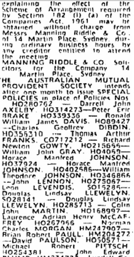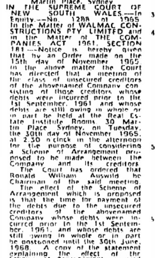 Sorry, I'm a bit lost here. I read it as Robert Gordon Walker has been declared a policy holder with AMP Insurance whose policy #HO145333 has either been lost or destroyed and will be issued with a special replacement policy. Does this somehow correlate with former statement re the demise of Walmac Constructions and its creditors?