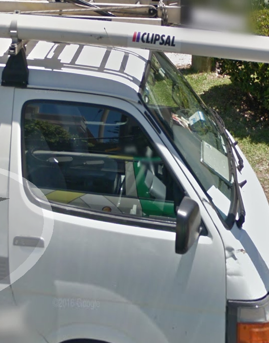 Clipsal brand logo on van roof-storage tube.