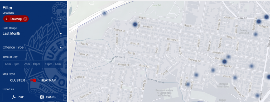 I did a search on the QLD crime map for the last month, 3 incidents are listed on the map. Unfortunately the map wont allow you to zoom right in to see an exact address and just has the hotspot to mark where the incidents occurred so it can be out a little bit. A cluster of 3 incidents. The blue hot spot appears to possibly be in a unit complex next to or 2 doors up from 58. Initially police reported 2 crime scenes had been set up.