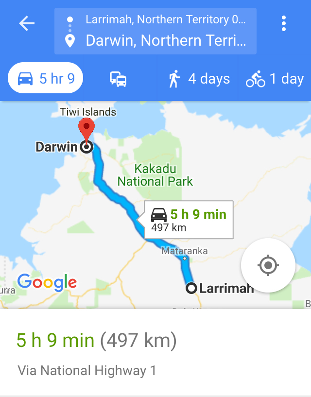 Darwin’s about 500 clicks or 5 hours’ drive from Larrimah.