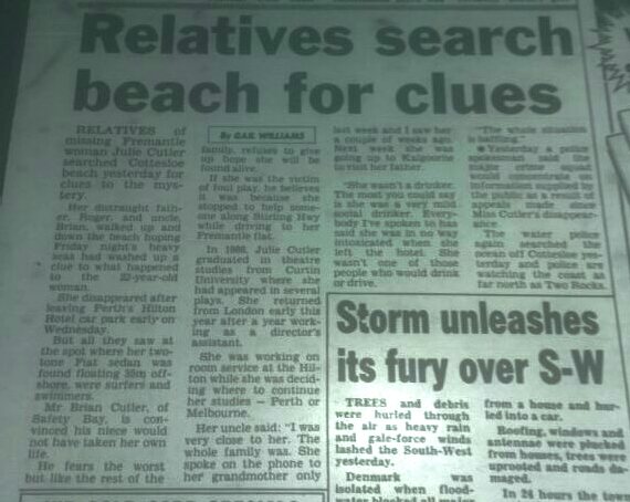 Nevertheless Julie's father Roger from Kalgoorlie and uncle Brian Cutler from Safety Bay searched Cottesloe beach on Saturday 25th and spoke to Gae Williams of the Sunday Times.