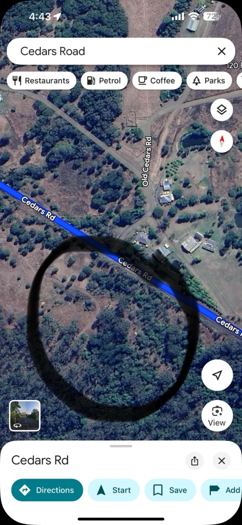 Thanks for clearing that up. Very close to homes, if it was on Cedars Rd at that point, or maybe seen on the track/road that's visible in the circle above.Yes. Here is the original map from the commenter. I don't think I am allowed to post the comment though, as it is social media.