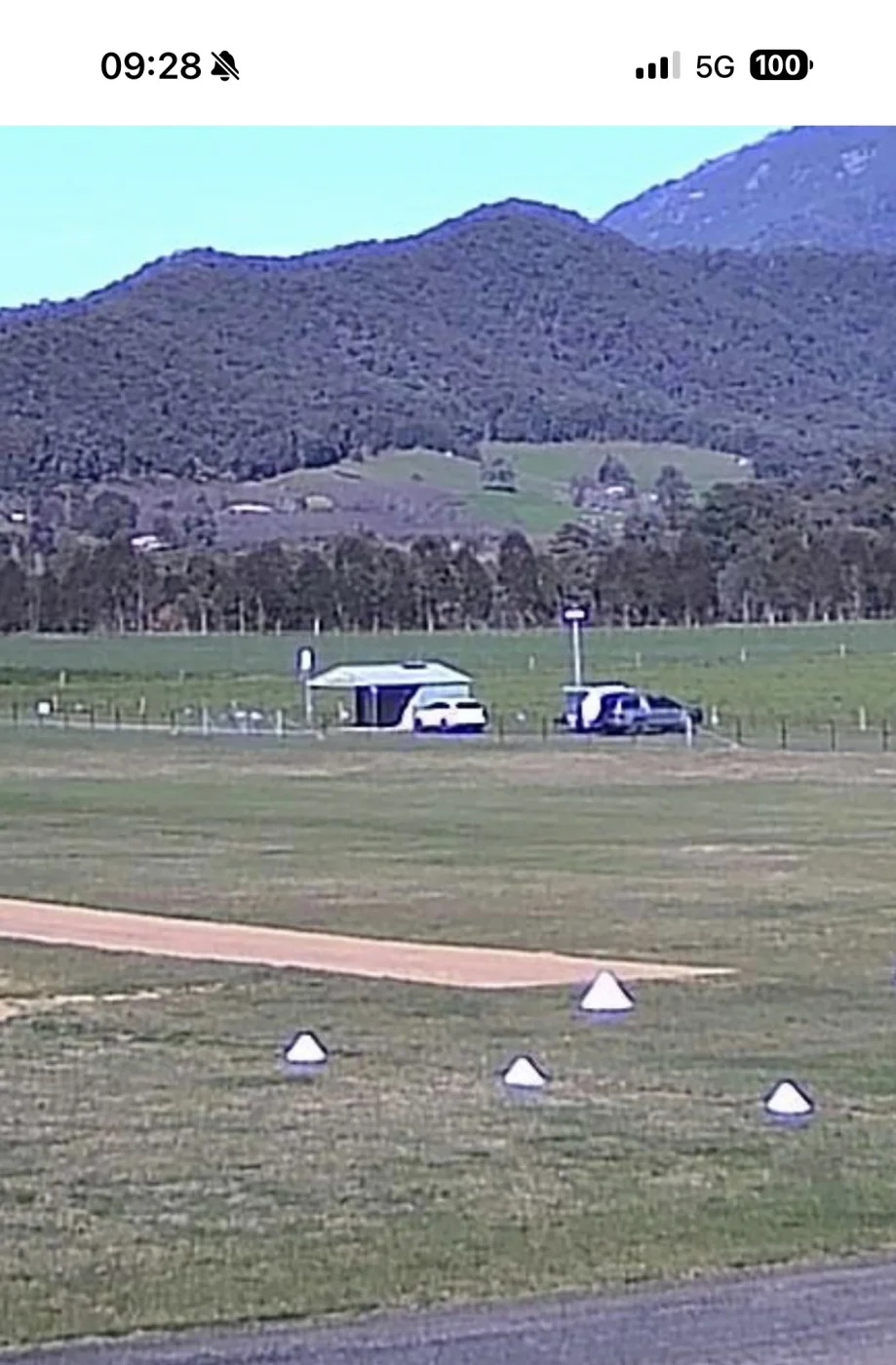At 11.16am local time this morning there were three different cars parked near the 'thing' at the Porepunkah airfield.