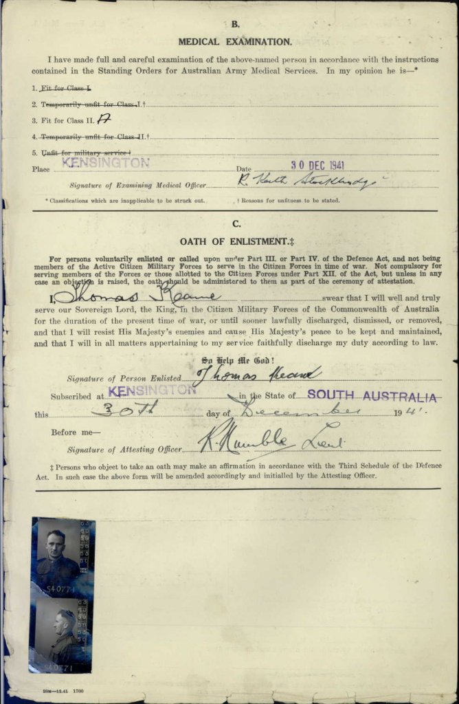 Tom Keane; rank/rating, Trimmer; age, 20; place of birth, Mayo