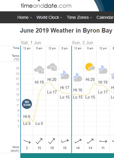 Byron Bay weather 2019